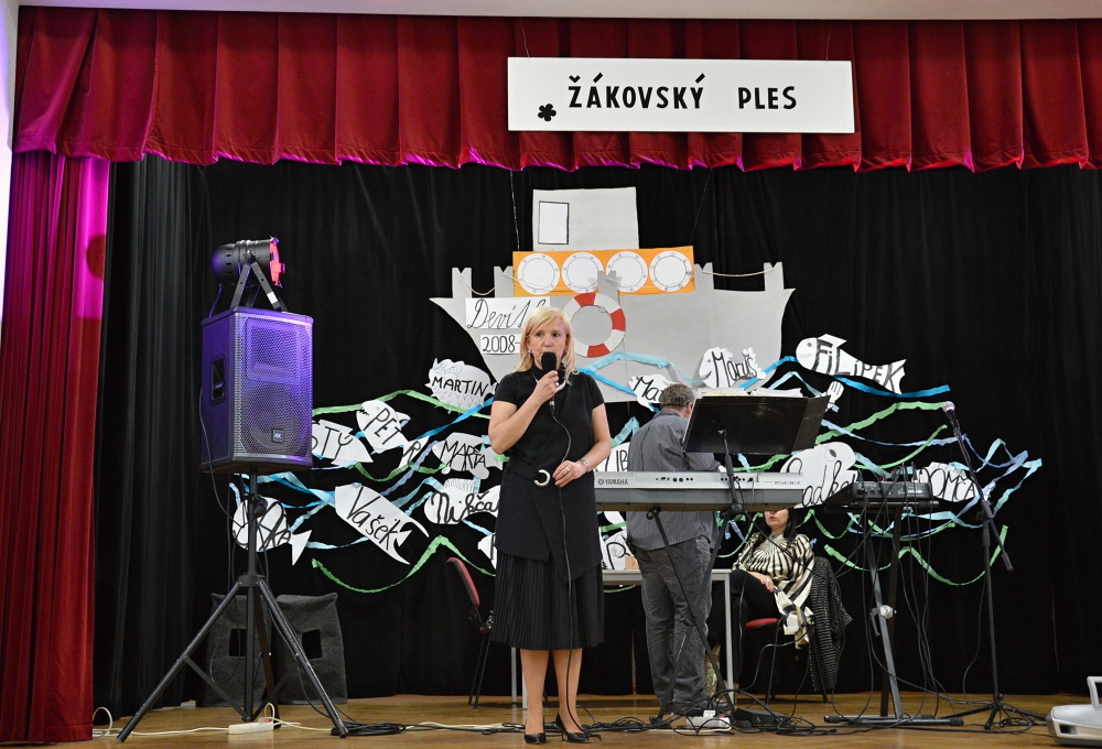Ples byl zahájen úvodním slovem ředitelky školy paní Mgr. Romanou Šeterlovou.