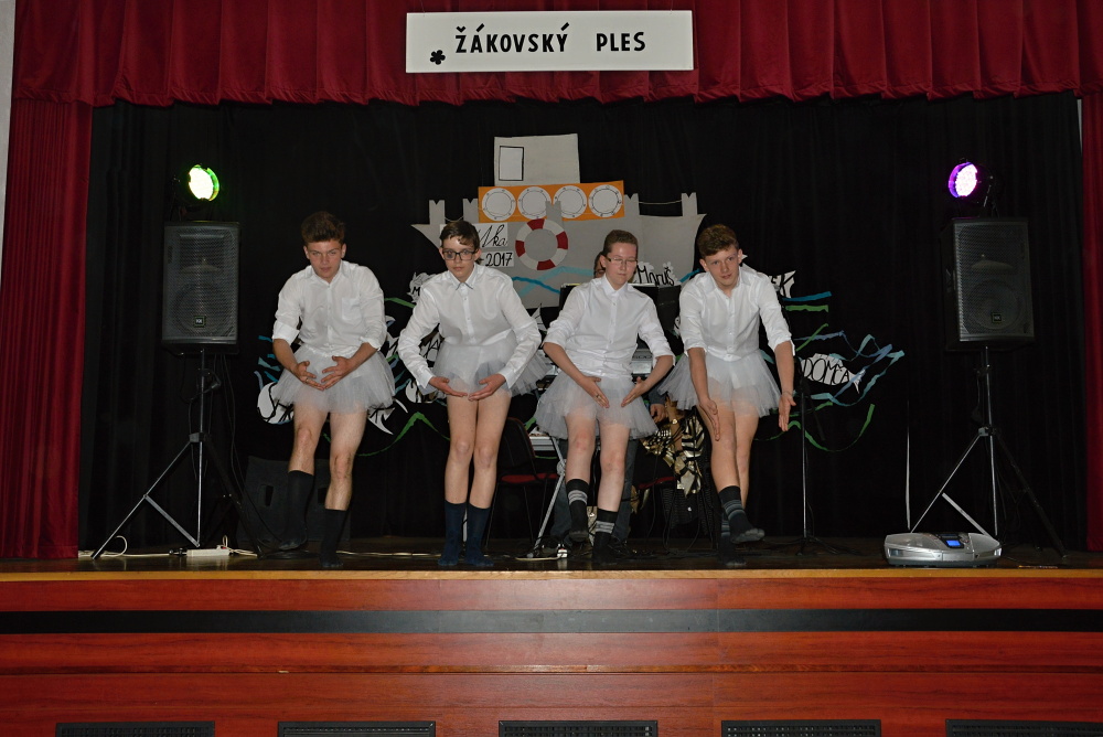 Zlatým hřebem večera byla parodie na balet Labutí jezero v podání čtyř hochů z deváté třídy.