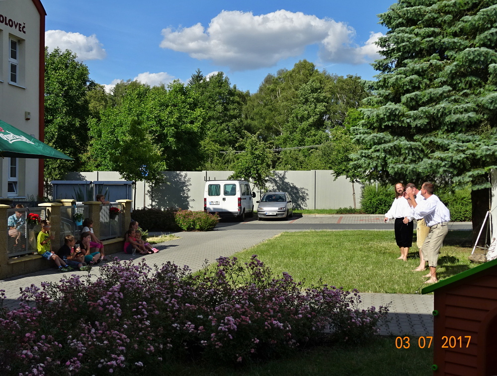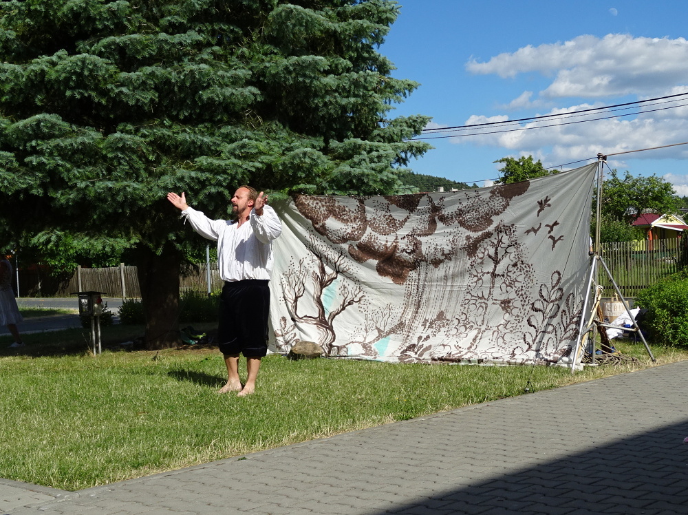 Také do Kolovče, zavítalo v pondělí 3.července se svým pouličním vystoupením, divadelní studio D3 z Karlových Varů.