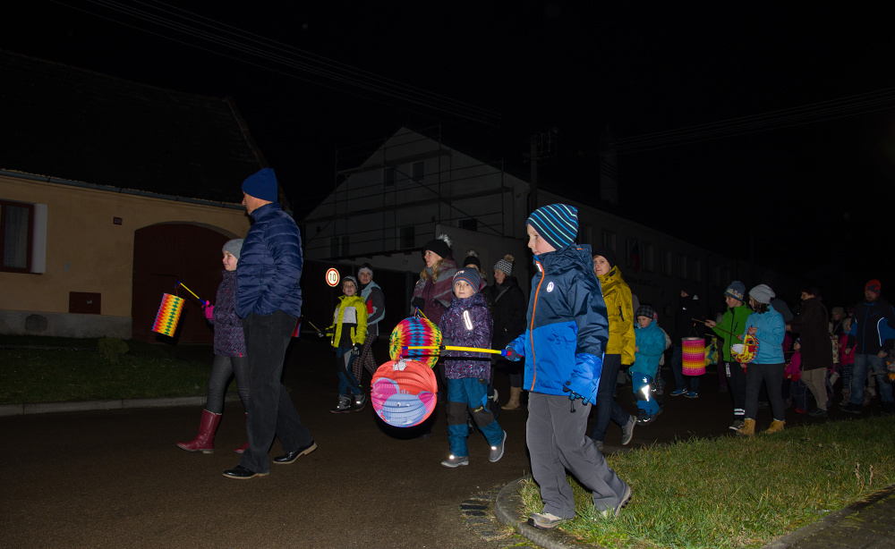 Poté průvod s lampiony prošel obcí a byl ukončen na Náměstí svobody.