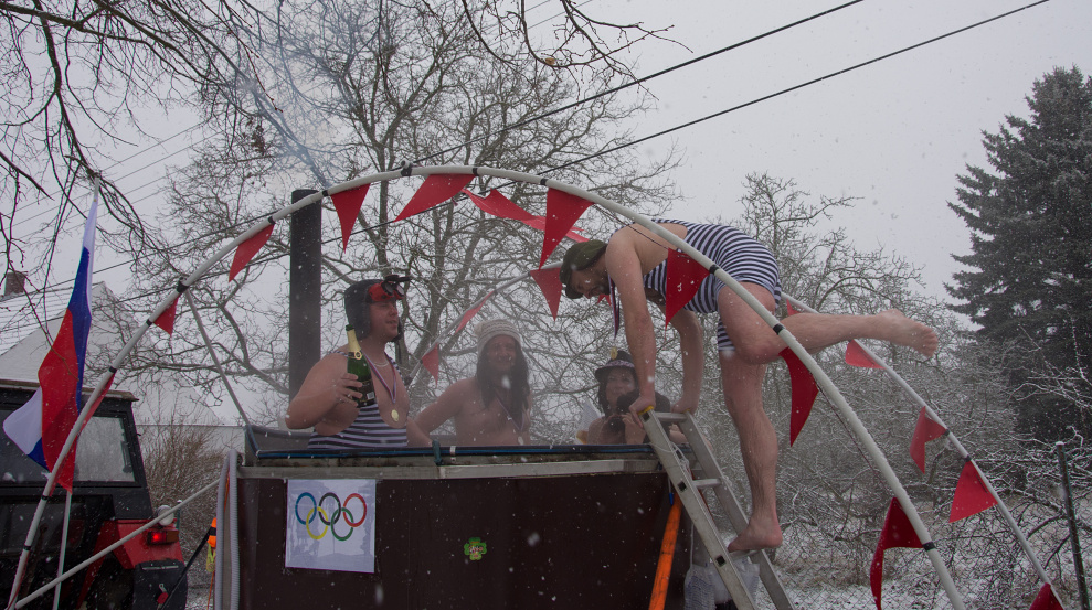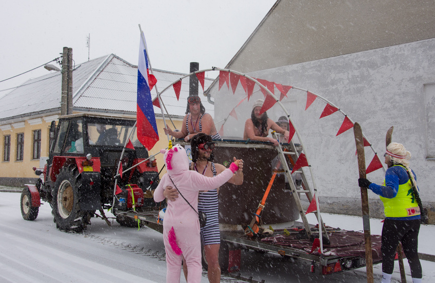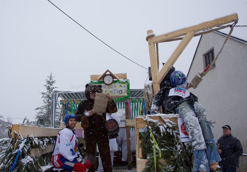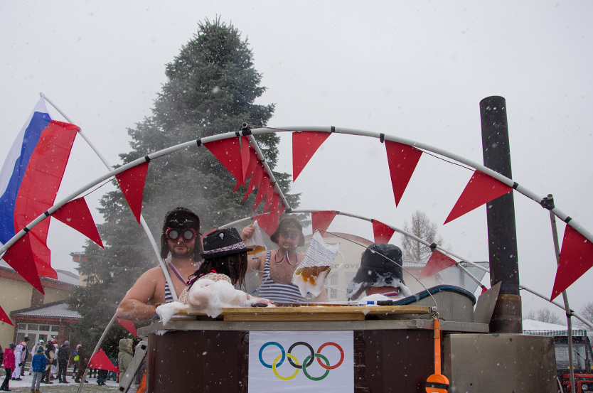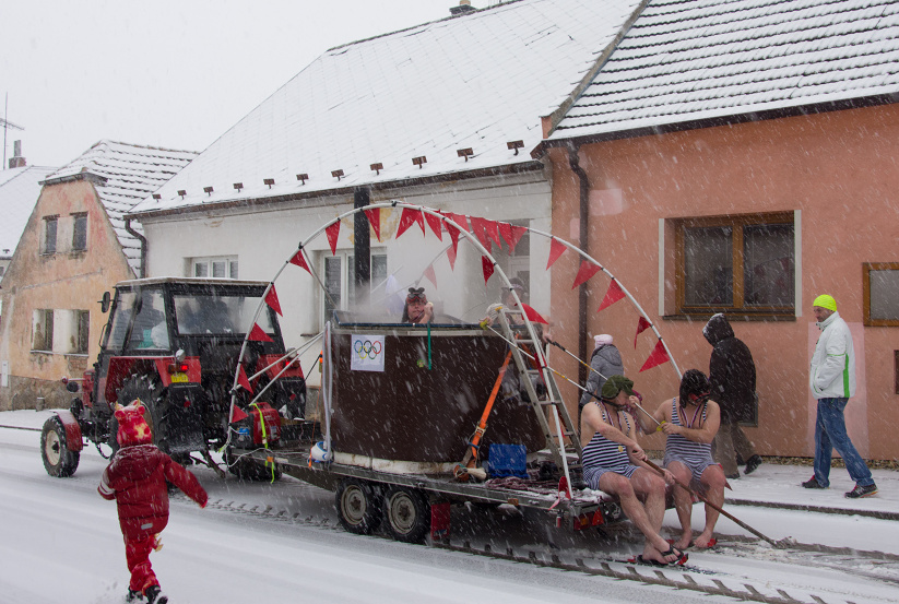 Tématem letošního masopustu byly zimní olympijské hry, které v tuto dobu probíhají v Jížní Korei. To znamená, že jsme zde mohli potkat taková jména jako je Jágr, Dopita, "Sádlíková" - parodie na Sáblíkovou a další.