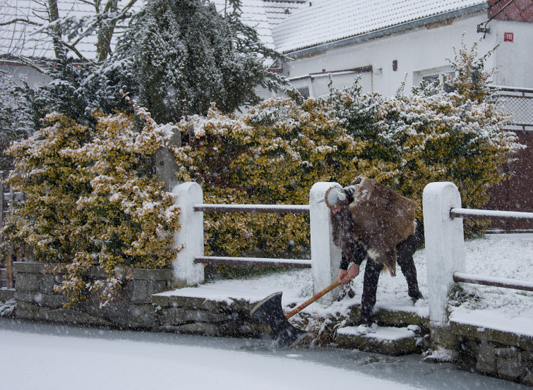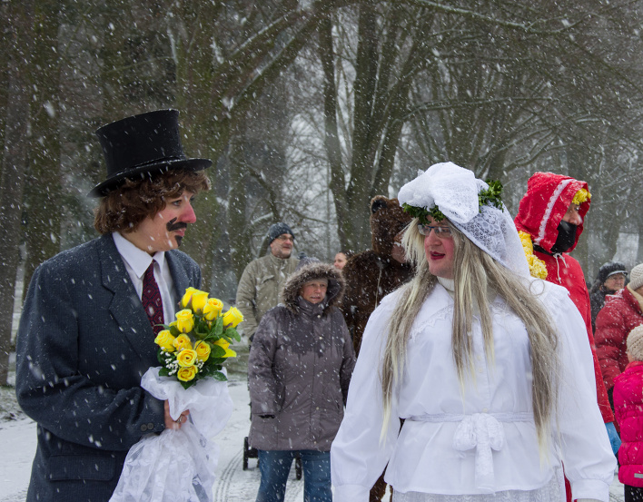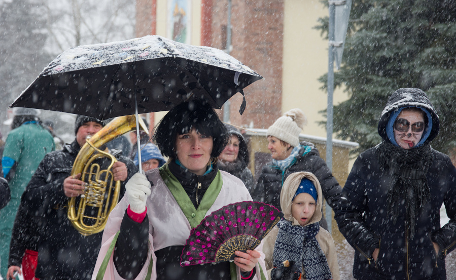 I přes silné sněžení prošel 17.2. městysem Koloveč masopustní průvod.