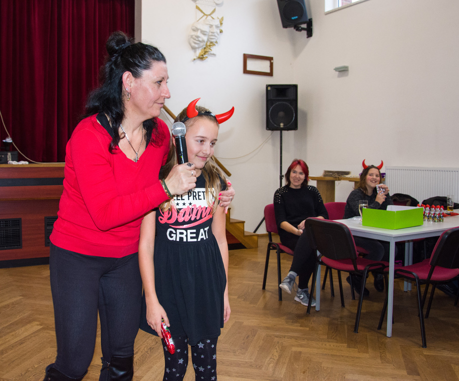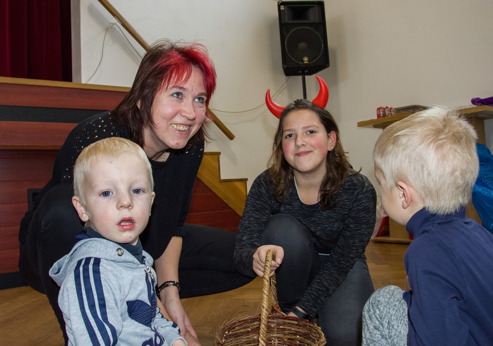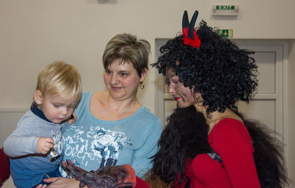 Na závěr odpoledne zavítali mezi děti čerti doprovázenými mikulášem a andělem. Také oni měli pro děti přichystané dárečky, které rozdávali za písničku nebo básničku.