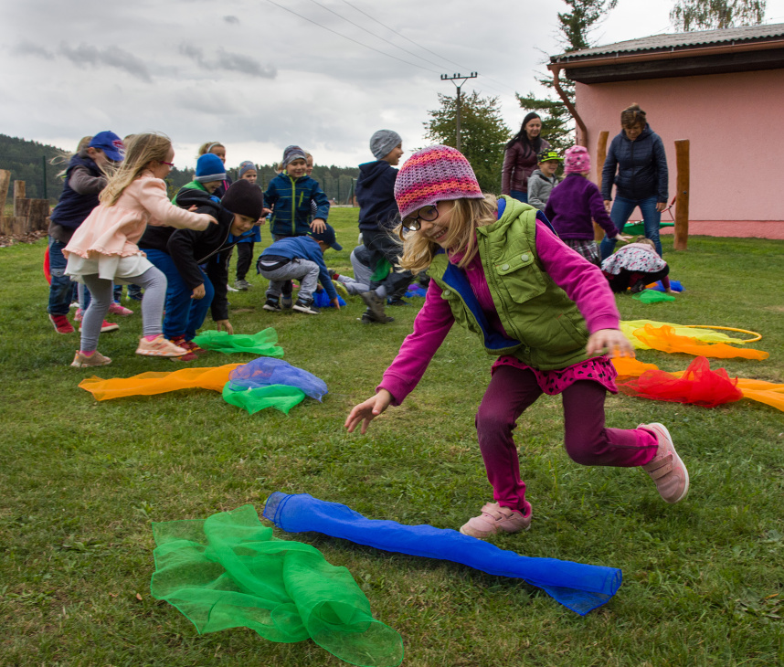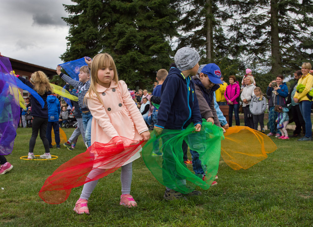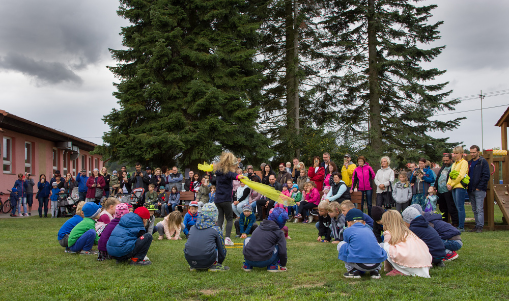 Programem slavnostního odpoledne bylo vystoupení předškoláků, děti si s rodiči mohly vyzkoušet výrobu podzimní dekorace nebo si zasoutěžit na nové zahradě.