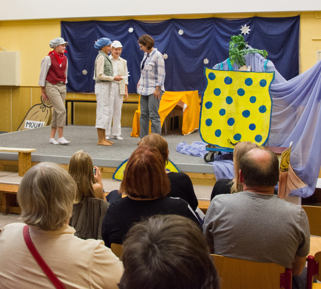 Žáci kroužku, pohádku odehráli v pátek 25. října od 17:00 hodin v hale Základní školy.