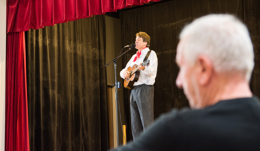 Senioři si tak mohli v KD Koloveč poslechnout a také zazpívat oblíbené "šlapeťácké" písně v interpretaci Vladimíra Pecháčka, bývalého člena skupiny Šlapeto.