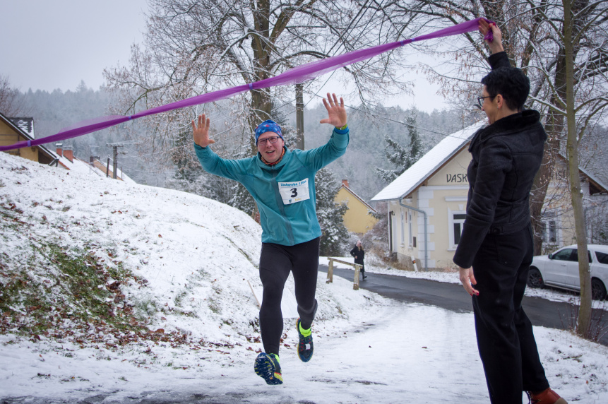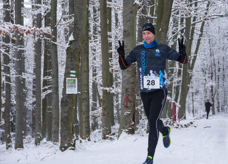 Počasí přálo a tak se závodníci mohli při běhu kochat krásnou zimní zasněženou krajinou.