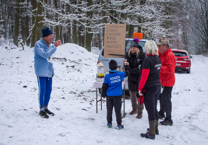 Pro doplnění tekutin, bylo na běžce připraveno malé občerstvení, které bylo umístěno na křižovatce obou tras.