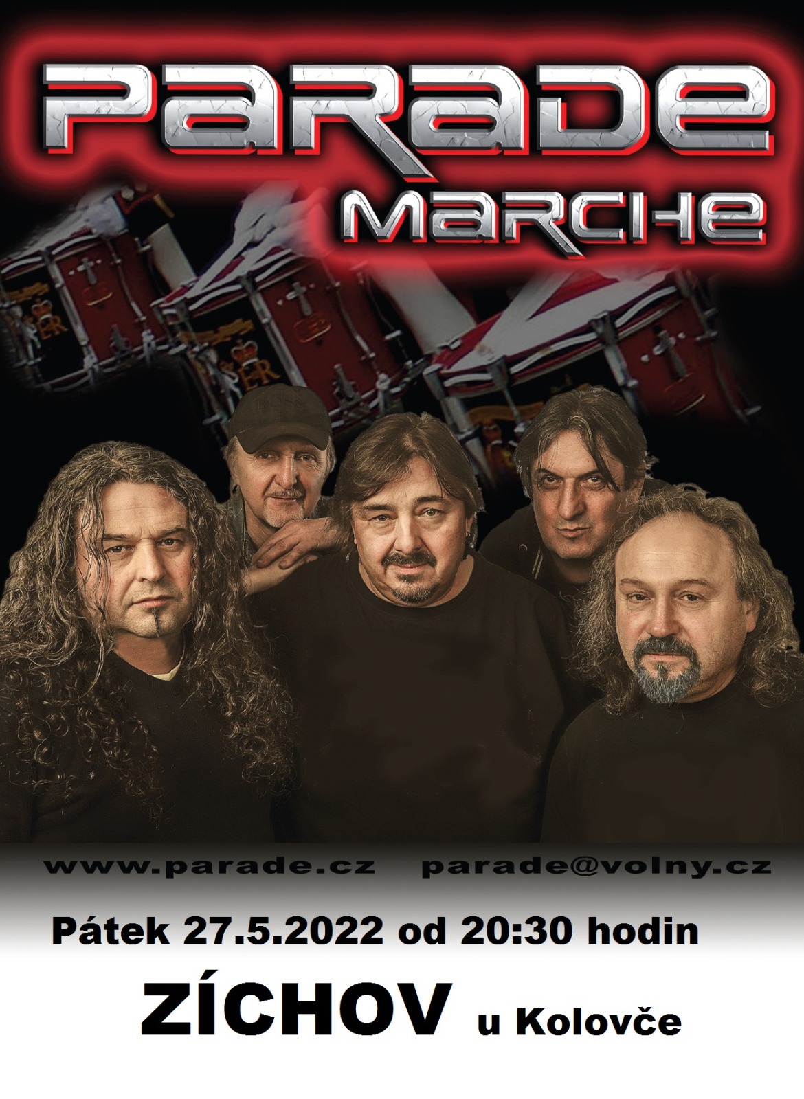 Úvod > Aktuality > Parade Marche s Radomilem Zíkou na Zichově Parade Marche s Radomilem Zíkou na Zichově Zveme širokou veřejnost na taneční zábavu s kapelou Parade Marche s Radomilem Zíkou v pátek 27. května 2022 od 20:30 v KD Zichov. Fotogalerie Dokumenty ke stažení Parade Marche - Zichov ke stažení 0 B